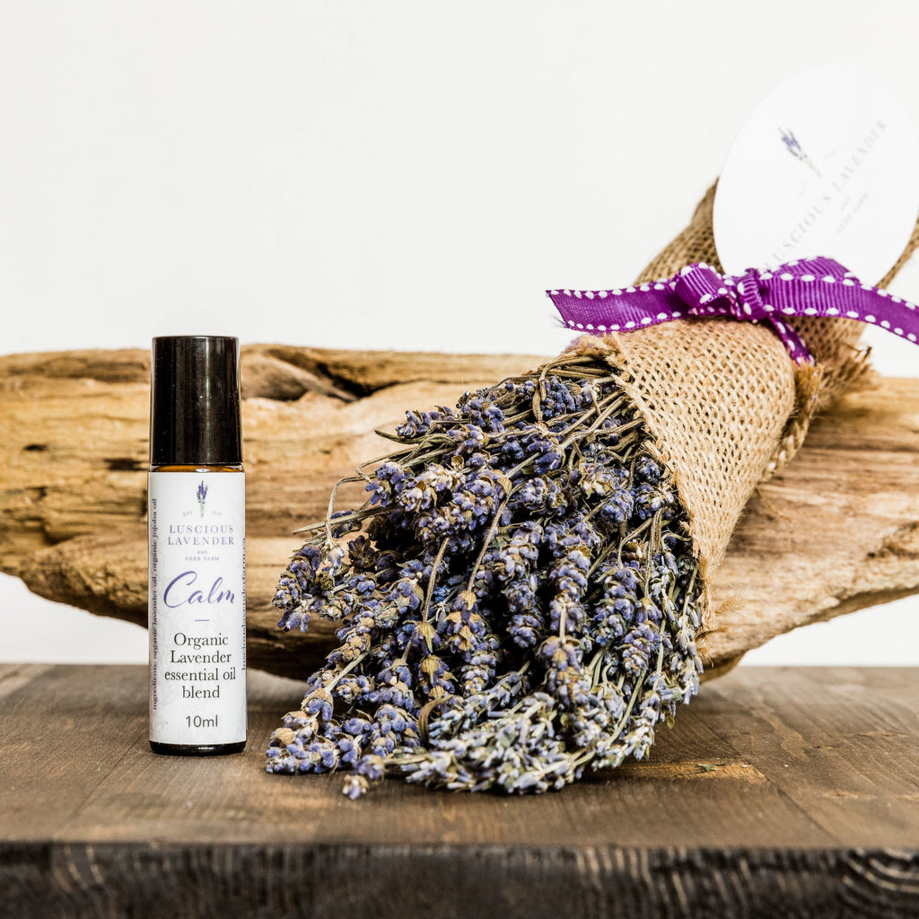 A mix of organic jojoba oil and organic lavender essential oils in a pre-blended roll-on applicator.