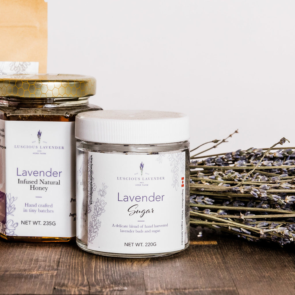 A delicate blend of hand harvested lavender buds and sugar. The beautiful floral sugar adds the perfect sweet and aromatic touch to top your baked goods or a delicious addition to a hot cup of tea. A sweet gift or perfect treat for your kitchen.